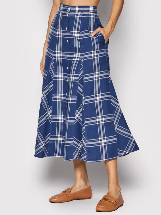 Polo Ralph Lauren Γυναίκες Midi Φούστα σε γραμμή Α 211857022001 Μπλε Regular Fit